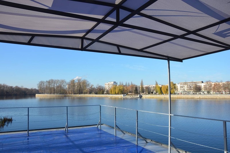 Кафе будет плавать до нового фонтана на воде, но еще неизвестно, по каким дням и в какое время. Скорость во время плавания будет около 10-12 км/ч, при этом на борту согласно действующих правил может находиться не более 12 человек.