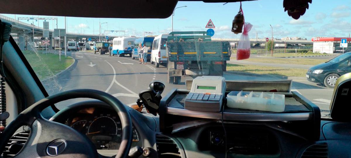11.09.2019 10:56 Маршрутка стоит в пробке перед переездами в районе Западного обхода. Фото прислано читателями. Источник фото