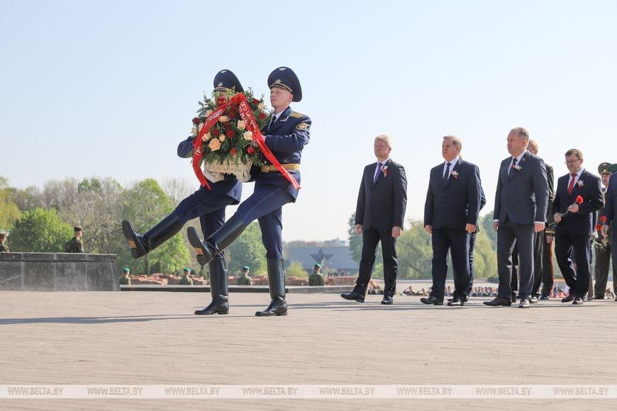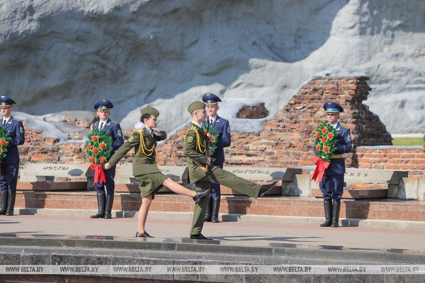 В мемориальном комплексе собрались руководство Бреста и области, депутаты, представители общественных организаций, военнослужащие, дипломаты. Они возложили цветы к Вечному огню и плитам некрополя, почтили память павших героев минутой молчания. Завершилось мероприятие торжественным маршем по площади Церемониалов.