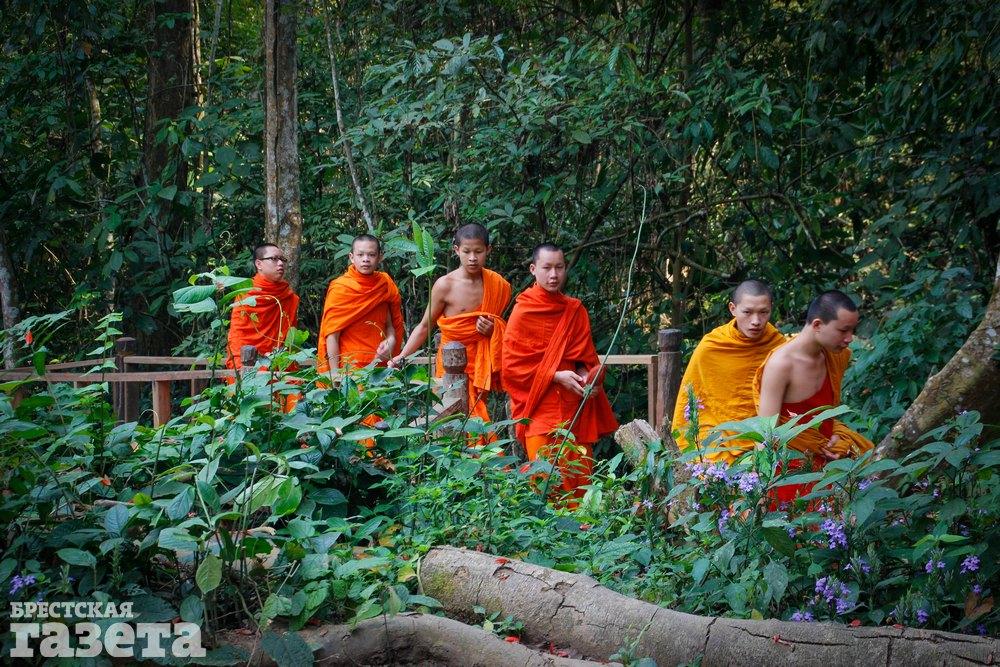 В Лаосе каждый мужчина за свою жизнь обязан побыть монахом. Довольно часто в монастыри отправляют совсем маленьких мальчиков, но этим ребятам уже по 14-15 лет. Жизнь в монастыре не обременяет их физической работой. Весь день занят молитвами, медитациями и службами. Это духовно просветляет, но достаточно скучно для молодежи. Мальчикам запрещено покидать границы монастыря, но этим ребятам повезло. Волонтер из Германии взяла парней под свою опеку и отвезла на экскурсию к знаменитым водопадам неподалеку от прежней столицы страны города Луанг-Пробанг. Ребята провели там несколько часов и теперь с грустными лицами уходят из парка.