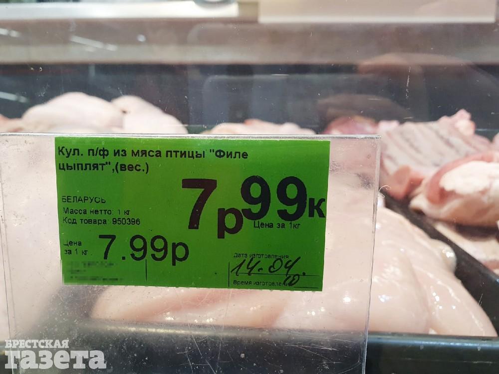 В редакцию «БГ» обратилась читательница. Она возмутилась тому, что 13 апреля куриное филе в одном из магазинов Бреста продавали по 9,49 рубля. По ее словам, еще в марте оно стоило чуть дороже 7 рублей.